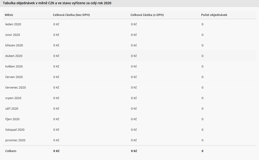 V další části přehledu najdete tabulku s podrobným rozpisem všech objednávek a celkových částek za vybrané období.