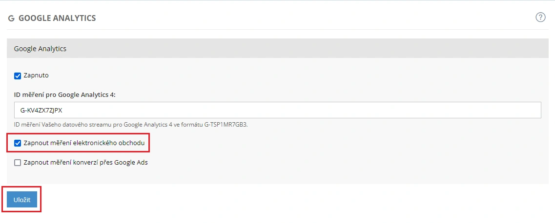 Následně zaškrtnete možnost Zapnout měření elektronického obchodu a dialog k nastavení uložíte.